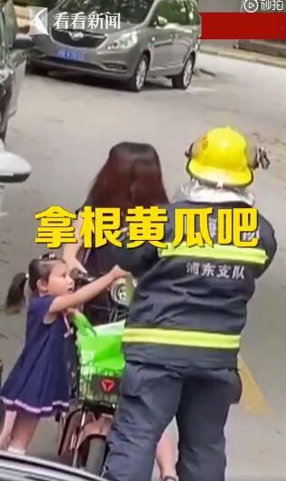 “消防员真贴心,还给孩子送西瓜吃。”
